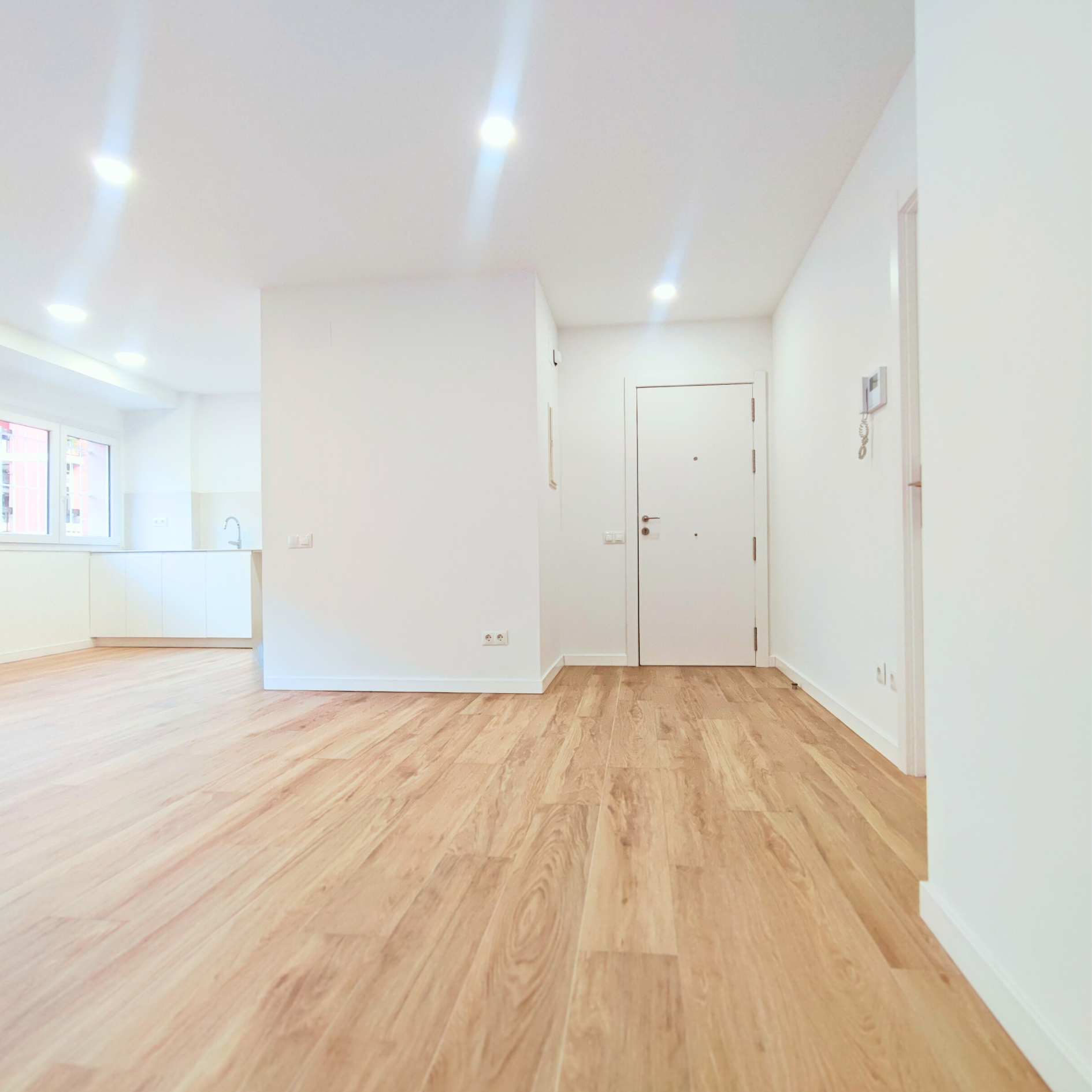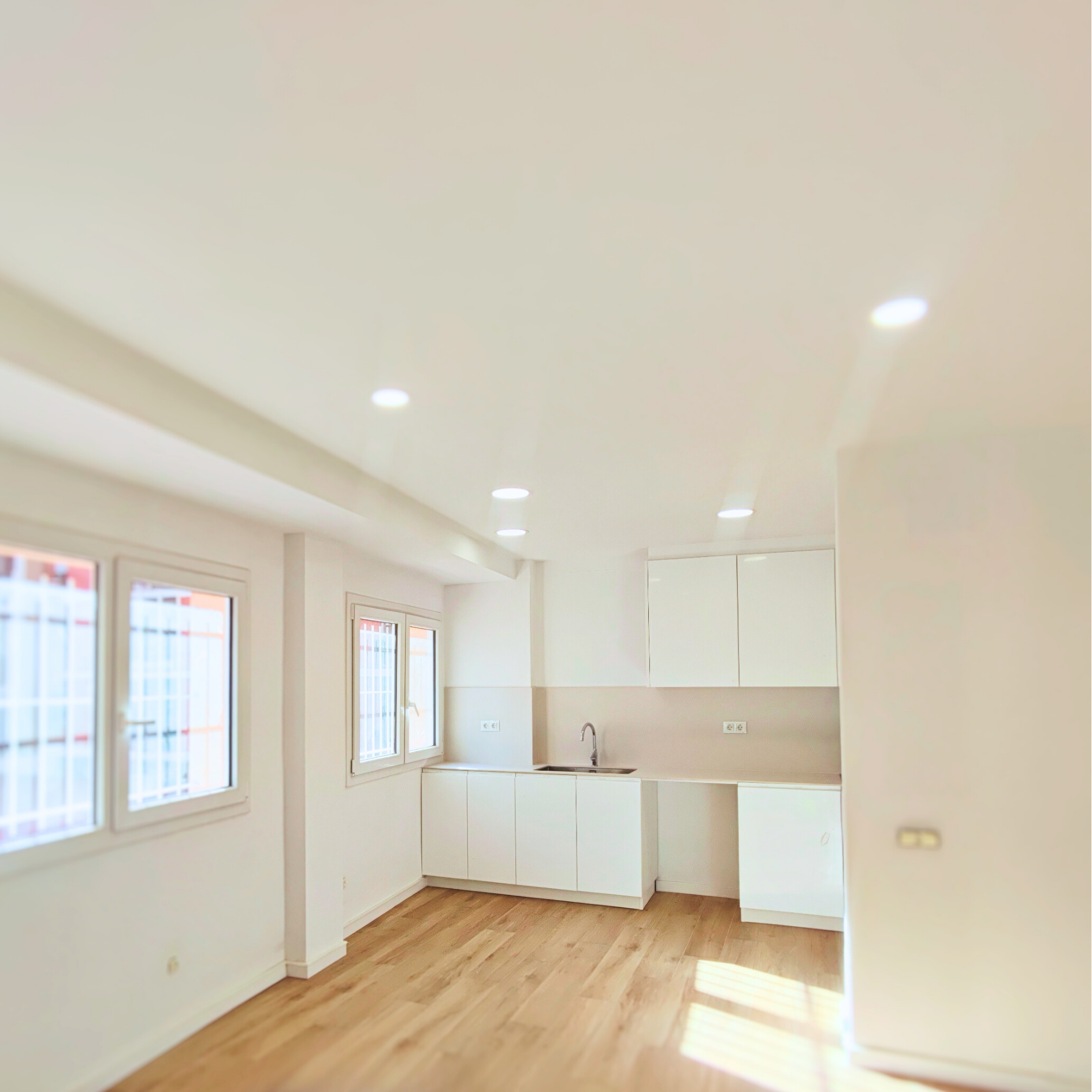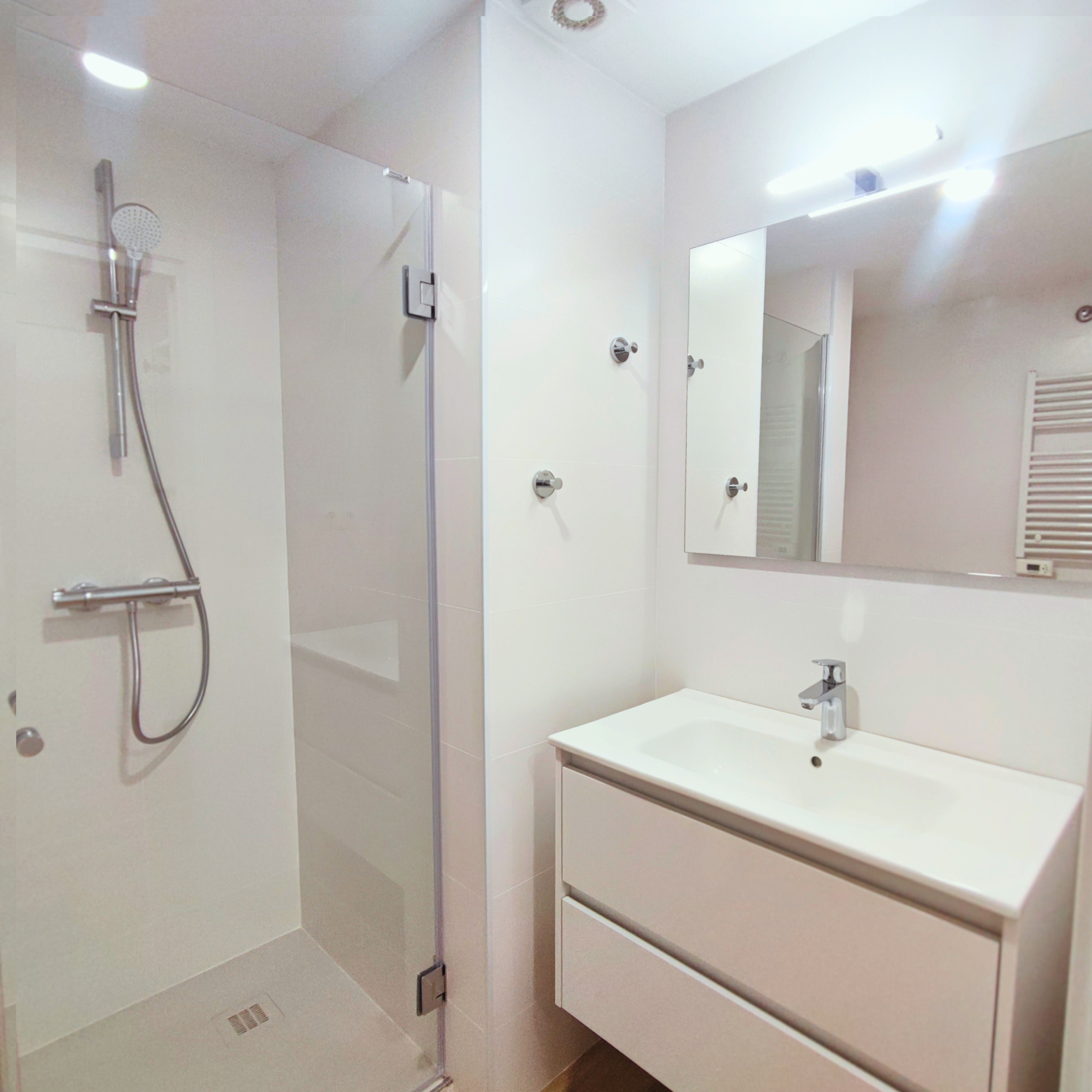 Un antiguo entresuelo de oficinas de los años 70 debía transformarse en vivienda cumpliendo la normativa actual. El proyecto exigía resolver eficiencia energética, ventilación y el saneamiento de dos baños, uno de ellos accesible, dentro de una distribución muy condicionada por los bajantes del edificio.